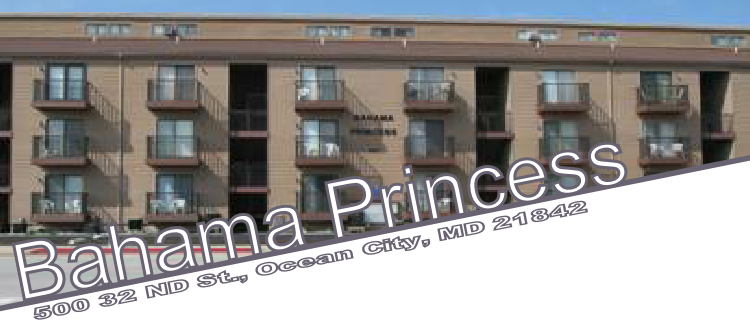 The Bahama Princess is a condominium on 32nd Street in Ocean City, MD. It sits directly on the Isle of Wight Bay and has private boat slips as well as two shared boat slips.